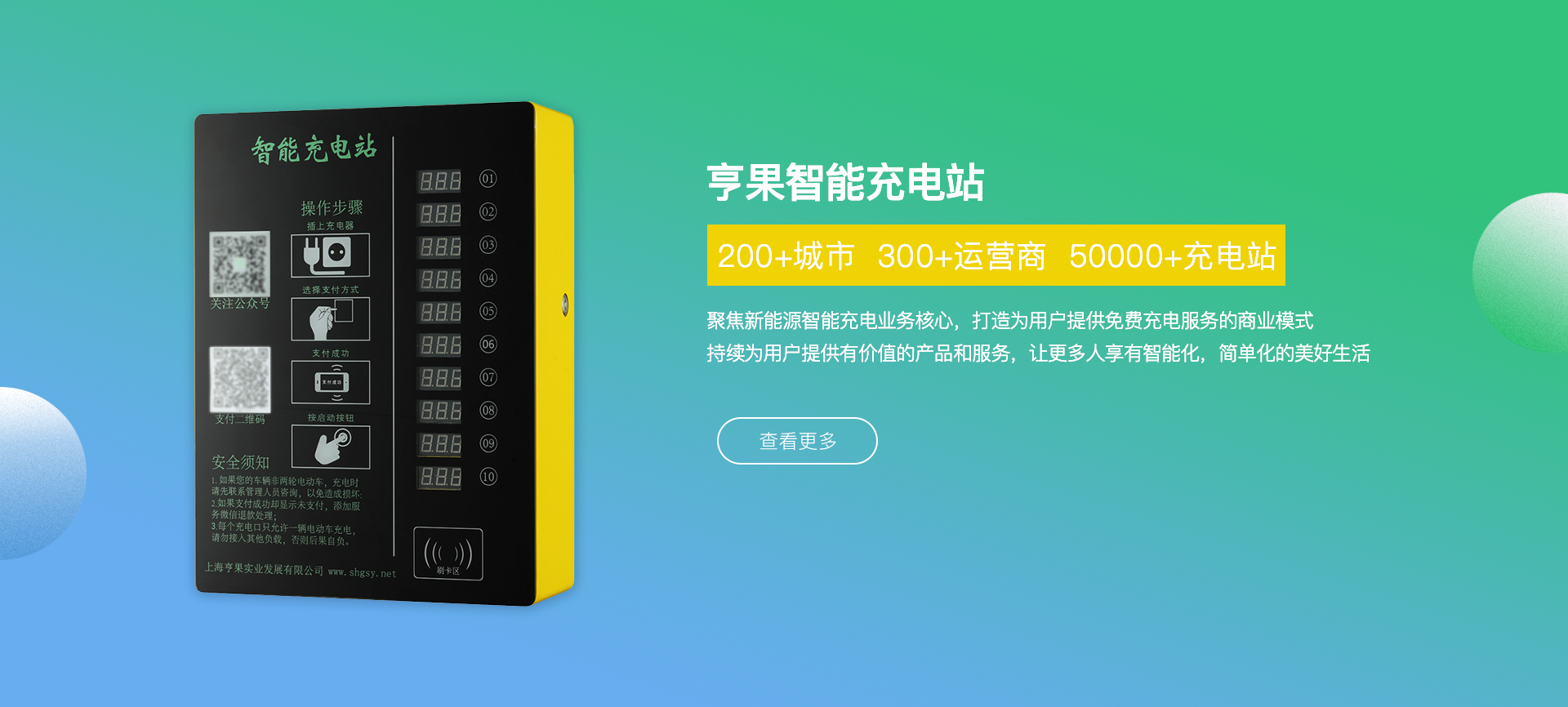 公司總部位于上海市青浦區(qū)趙巷新城經濟開發(fā)區(qū),專注于新能源智能充電操作系統(tǒng)、智能電動車充電樁、充電樁行業(yè)運營管理平臺等多類相關 產品的研發(fā)、設計、銷售和運營,產品現(xiàn)已廣泛應用于國內各城市居民社區(qū)、高校、及商業(yè)綜合體車輛聚集區(qū)域及市政配套領域。